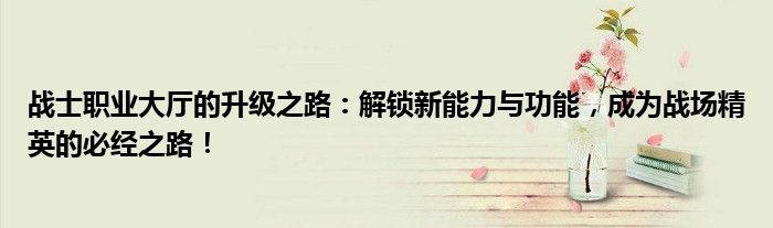 战士职业大厅的升级之路:解锁新能力与功能,成为战场精英的必经之路!