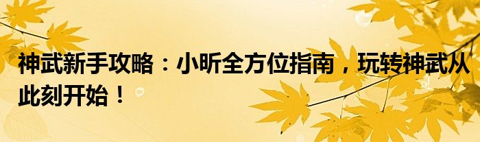 神武新手攻略:小昕全方位指南,玩转神武从此刻开始!