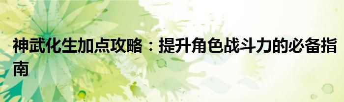 本篇文章旨在介绍在神武游戏中化生加点的重要性,帮助玩家理解和掌握如何合理地为自己的角色进行加点,从而提升角色的战斗力。本文将详细介绍神武化生加点的基本原则、策略技巧以及常见问题解答。