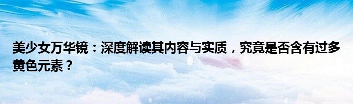 关于“美少女万华镜”这个词汇,网络上有各种不同的解读和看法。其中一个比较普遍的疑问就是,这部作品是否过于黄色内容充斥,接下来我们将对这一问题进行深入的分析和讨论。