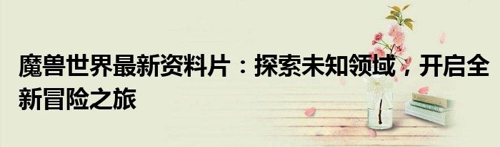 魔兽世界最新资料片:探索未知领域,开启全新冒险之旅
