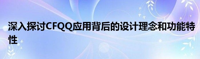 本文旨在深入探讨 CFQQ 应用的设计理念及功能特性,带领读者深入了解这一应用的核心价值和优势。
