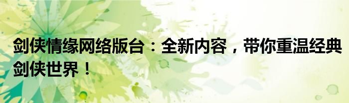 剑侠情缘网络版台:全新内容,带你重温经典剑侠世界!