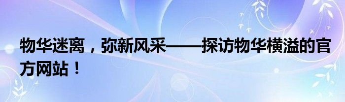物华迷离,弥新风采——探访物华横溢的官方网站!
