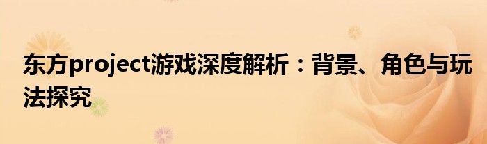 本文将带领读者深入了解“东方project游戏”,从背景设定、角色介绍到游戏玩法,全方位解读这款独具魅力的游戏。