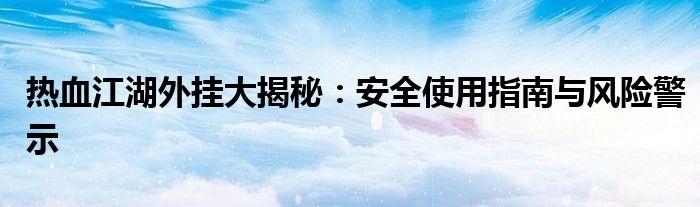 热血江湖外挂大揭秘:安全使用指南与风险警示