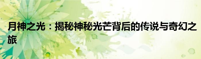 本文将带您走进神秘的“月神之光”世界,探索这个关键词背后所蕴含的传说与奇幻之旅。让我们一同揭开月神之光背后的秘密,领略其独特的魅力。