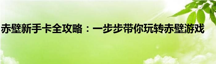 赤壁新手卡全攻略:一步步带你玩转赤壁游戏
