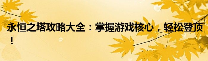 永恒之塔攻略大全:掌握游戏核心,轻松登顶!