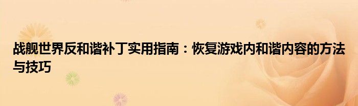 本文将详细介绍《战舰世界》反和谐补丁的相关知识,包括反和谐补丁的作用、使用方法、注意事项等。本文将通过实用指南的形式,帮助玩家了解和掌握反和谐补丁的使用技巧,从而恢复游戏内的和谐内容。同时,也将分享一些与反和谐补丁相关的建议和观点,以供玩家参考。