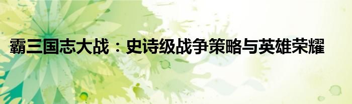 霸三国志大战:史诗级战争策略与英雄荣耀