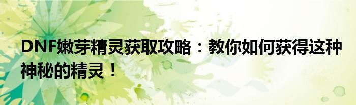 DNF嫩芽精灵获取攻略:教你如何获得这种神秘的精灵!