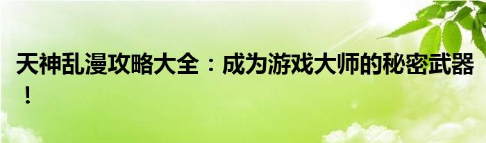 天神乱漫攻略大全:成为游戏大师的秘密武器!
