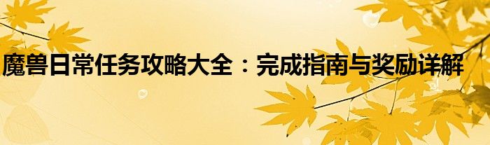 魔兽日常任务攻略大全:完成指南与奖励详解