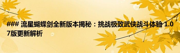 本文旨在为广大玩家提供关于《流星蝴蝶剑》版本1.07的全面解析,希望能够帮助大家更好地了解和体验这款游戏。