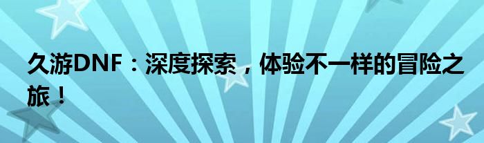 久游DNF:深度探索,体验不一样的冒险之旅!