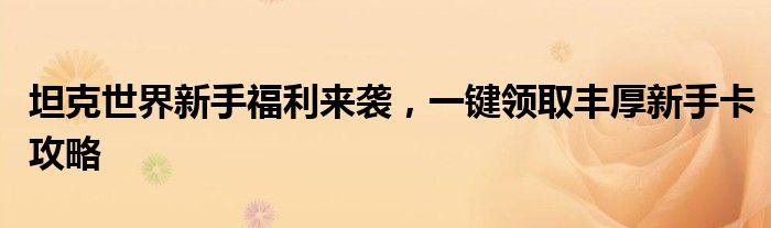 坦克世界新手福利来袭,一键领取丰厚新手卡攻略
