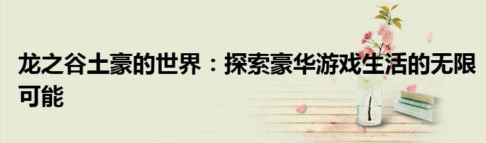 龙之谷土豪的世界:探索豪华游戏生活的无限可能