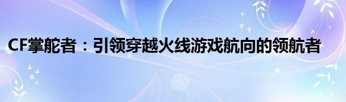 CF掌舵者:引领穿越火线游戏航向的领航者