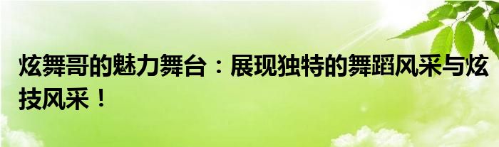 炫舞哥的魅力舞台:展现独特的舞蹈风采与炫技风采!