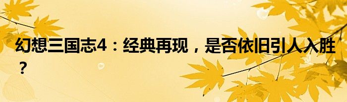 幻想三国志4:经典再现,是否依旧引人入胜?