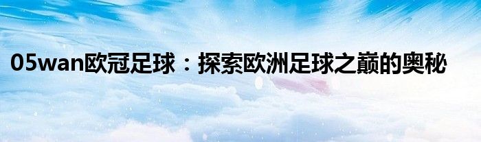 05wan欧冠足球:探索欧洲足球之巅的奥秘