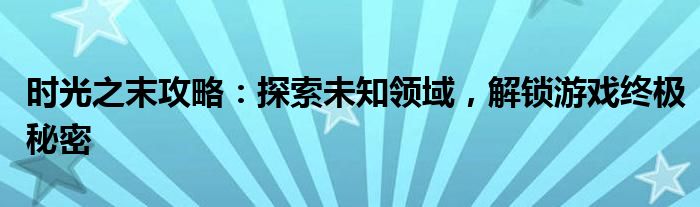 时光之末攻略:探索未知领域,解锁游戏终极秘密