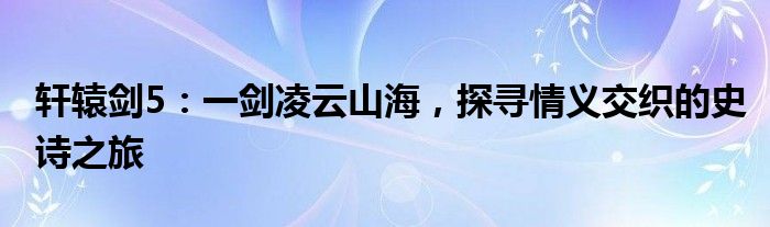 轩辕剑5:一剑凌云山海,探寻情义交织的史诗之旅