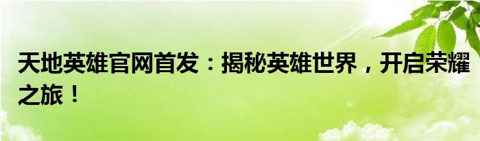 天地英雄官网首发:揭秘英雄世界,开启荣耀之旅!