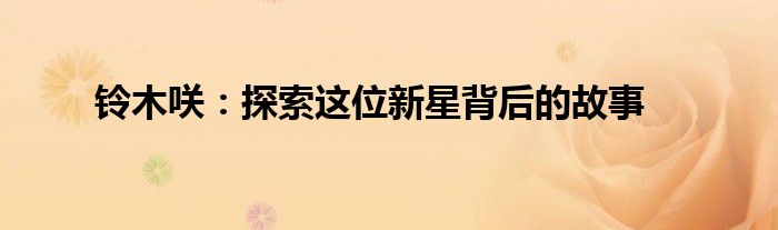 标题中的内容可能涉及关于铃木咲的生平信息、事业成就、个性特点以及其在娱乐圈的影响力等。具体内容可以根据不同的情境和需求进行编写。以下是一个可能的标题和内容示例: