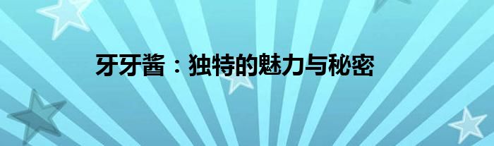 今天我们来聊聊关于“牙牙酱”的话题。作为一个独特的存在,“牙牙酱”这个词或许在日常生活里并不常见,但它所蕴含的魅力与秘密却是令人难以抗拒的。今天我们将一同探寻这个关键词背后的故事和魅力。