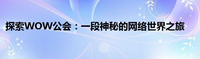 结语:WOW公会是魔兽世界游戏中的一个重要组成部分,它不仅是玩家交流和互动的平台,也是玩家成长和发展的舞台。通过加入公会,玩家可以结交更多的朋友,获得更多的资源和帮助,体验更多的挑战和机遇。希望本文能够让您更深入地了解WOW公会,为您的魔兽世界之旅带来更多的乐趣和收获。