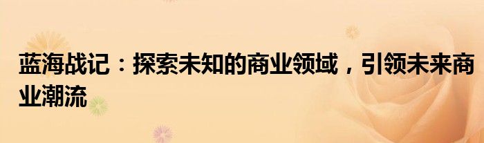 蓝海战记:探索未知的商业领域,引领未来商业潮流