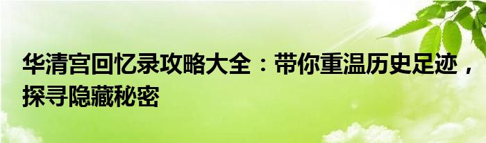 华清宫回忆录攻略大全:带你重温历史足迹,探寻隐藏秘密