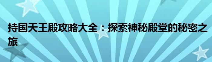 持国天王殿攻略大全:探索神秘殿堂的秘密之旅