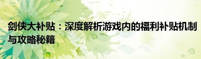 剑侠大补贴:深度解析游戏内的福利补贴机制与攻略秘籍