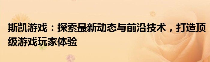 斯凯游戏:探索最新动态与前沿技术,打造顶级游戏玩家体验