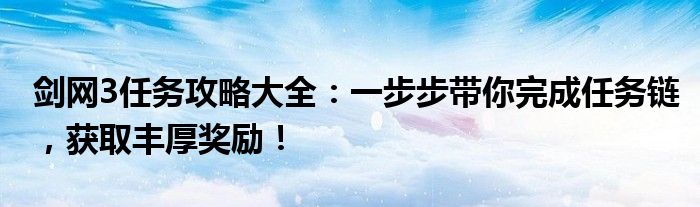 剑网3任务攻略大全:一步步带你完成任务链,获取丰厚奖励!