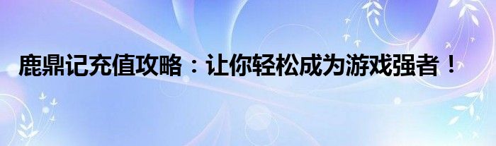 鹿鼎记充值攻略:让你轻松成为游戏强者!