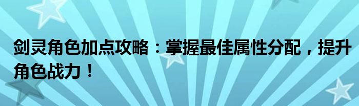本文将围绕“剑灵怎么加点”这一关键词,为玩家提供详细的加点攻略。通过合理的属性分配,帮助玩家提升角色战力,更好地体验游戏。