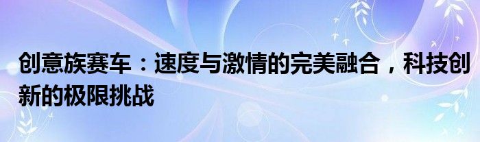 总之,创意族赛车代表着速度与激情的完美融合,是科技创新的极限挑战。无论是在赛场上还是日常生活中,创意族都将以其卓越的性能和创新的科技为人们带来无尽的惊喜和乐趣。