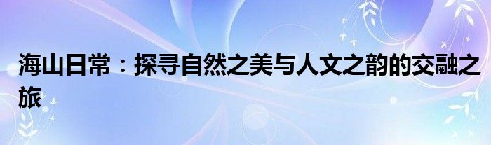 海山日常:探寻自然之美与人文之韵的交融之旅