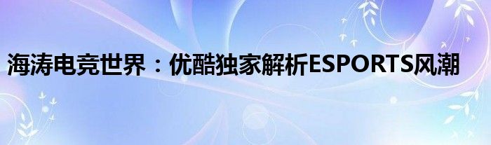 海涛电竞世界:优酷独家解析ESPORTS风潮