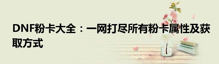 本文是一份全面的DNF粉卡大全,旨在为玩家们提供详尽的粉卡信息,帮助玩家更好地了解和使用粉卡,提升角色的战斗力。希望本文能对广大DNF玩家有所帮助。