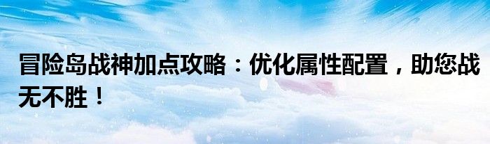 结语:通过本文的介绍,相信您对冒险岛战神加点有了更全面的了解。在实际游戏中,请根据自己的需求和实际情况进行加点配置,不断优化和调整,让您在冒险岛的征途上战无不胜!