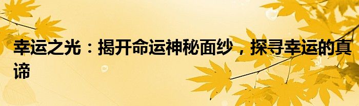 幸运之光:揭开命运神秘面纱,探寻幸运的真谛