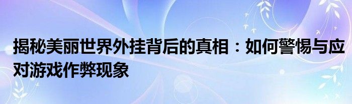揭秘美丽世界外挂背后的真相:如何警惕与应对游戏作弊现象
