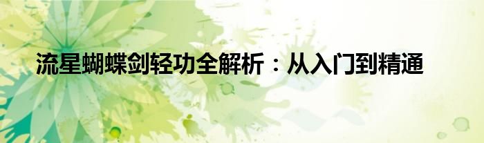 详细解析流星蝴蝶剑中的轻功技能,包括技能名称、效果、使用场景以及获取方式等。让读者全面了解每一种轻功技能的特点,从而有针对性地提升自己的操作能力。