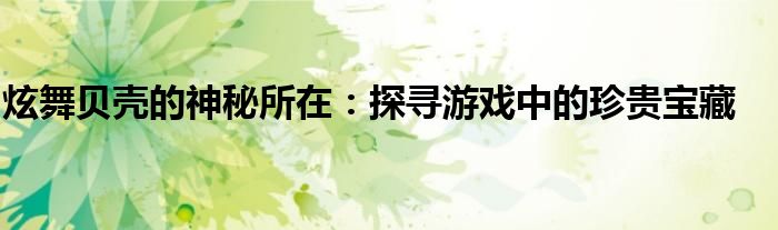 炫舞贝壳的神秘所在:探寻游戏中的珍贵宝藏