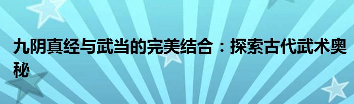 九阴真经与武当的完美结合:探索古代武术奥秘